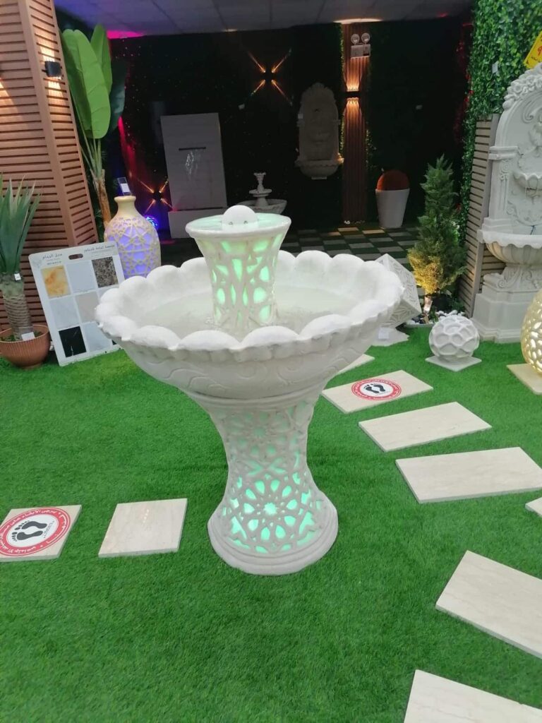 تلعب الإضاءة دورًا مهمًا أيضًا في إبراز جمال النوافير، خاصة في الليل، حيث يمكن استخدام أضواء ملونة أو خافتة لإضفاء أجواء ساحرة. بالإضافة إلى ذلك، فإن دمج النباتات الطبيعية أو الصخور حول النافورة يعزز من جمال التصميم ويجعله أكثر انسجامًا مع الطبيعة.
